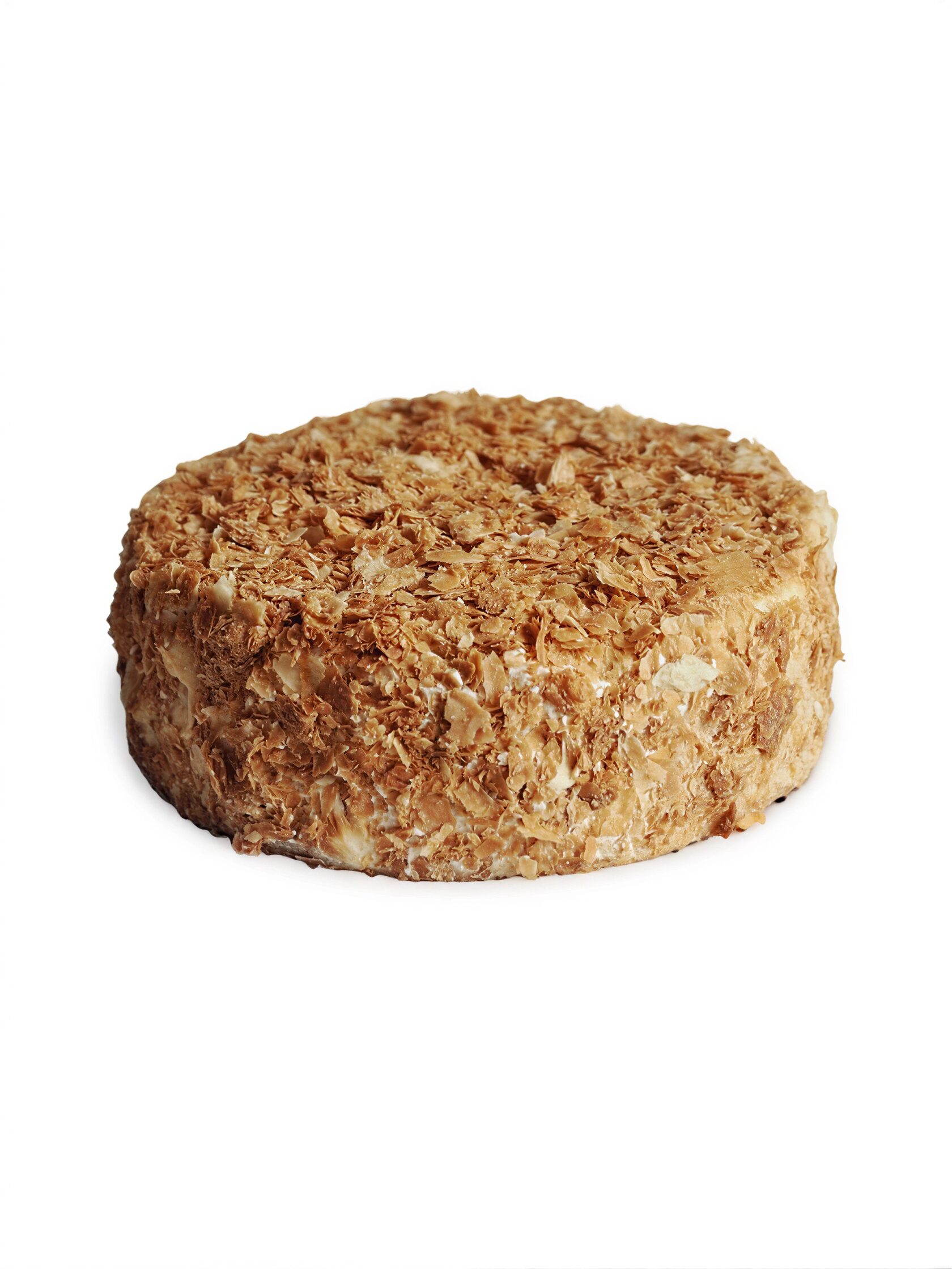 Хрустящие слоёные коржи, щедро пропитанные бархатистым заварным кремом со сливочным оттенком; сверху — золотистая хрустящая крошка. Классика, которая тает во рту. Вес 1.5кг