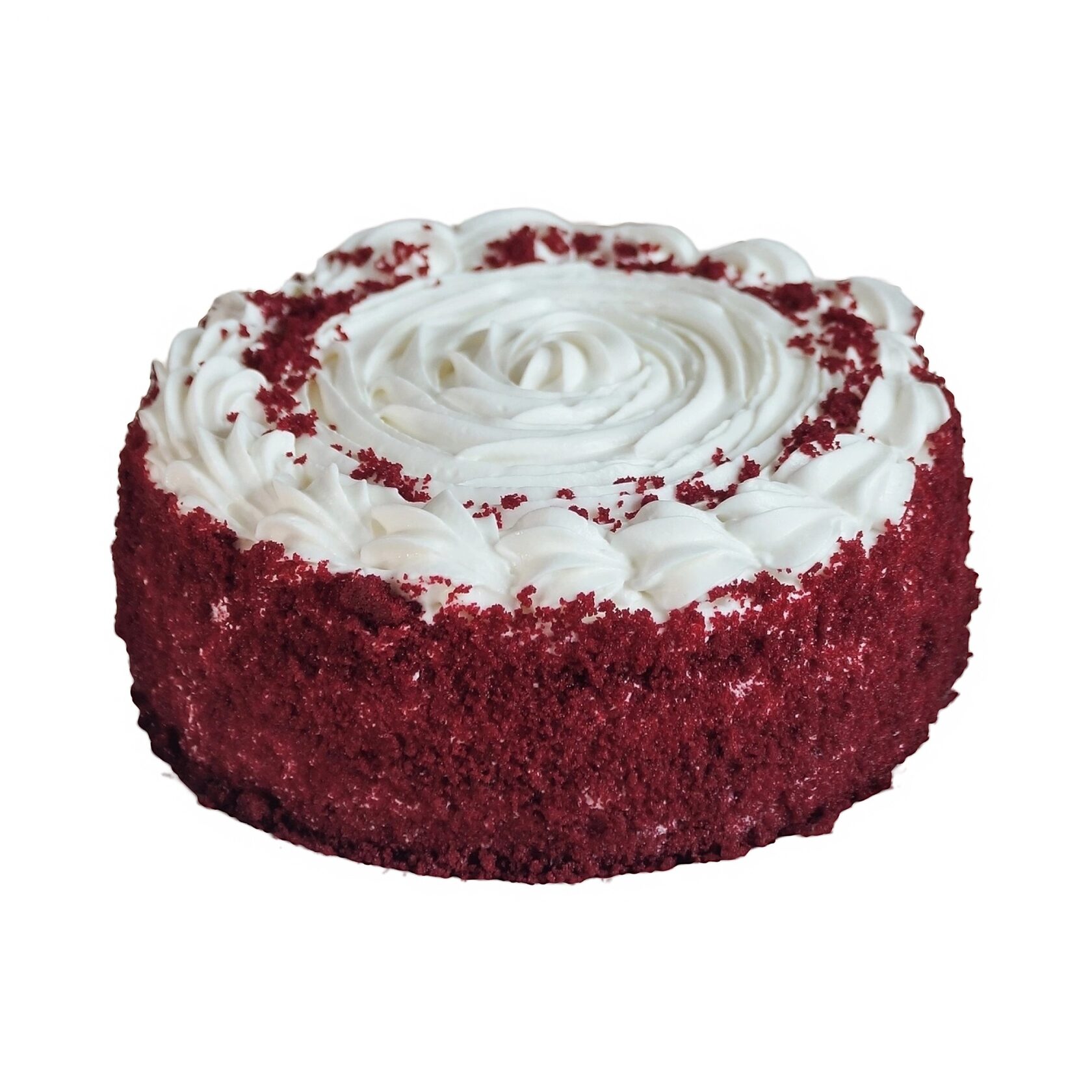 Нежный красный шифоновый бисквит, прослоенный бархатистым крем‑чизом и сочным клубничным конфи. Сверху оформлен лёгким сметанным кремом и аккуратно обсыпан крошкой — элегантно, свежо и аппетитно. Вес 1.5 кг